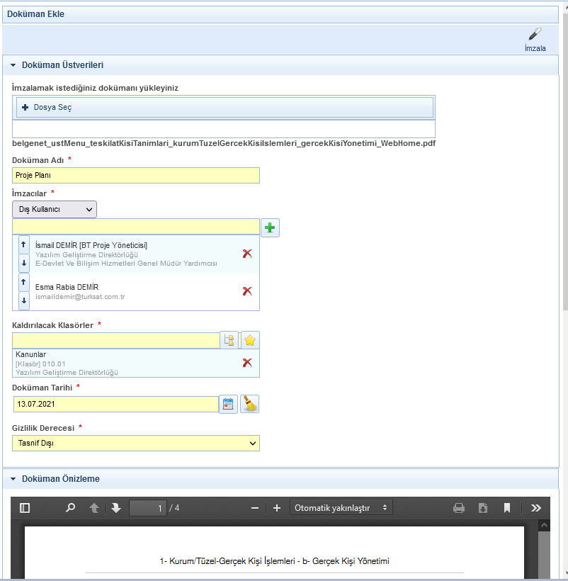 Attachments for Doküman İmzala